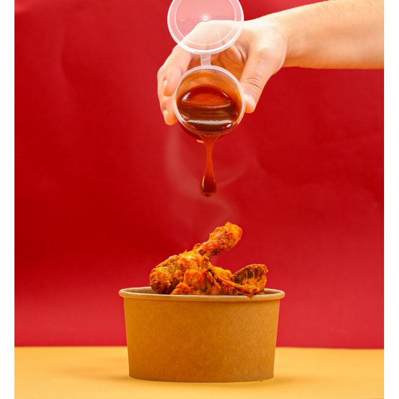 Transparentní PP kelímek na omáčku o objemu 3,5 oz s integrovaným výklopným víčkem. Balení 20 × 50 ks (celkem 1000 ks). Ideální pro dipy, dressingy a take-away provozy.