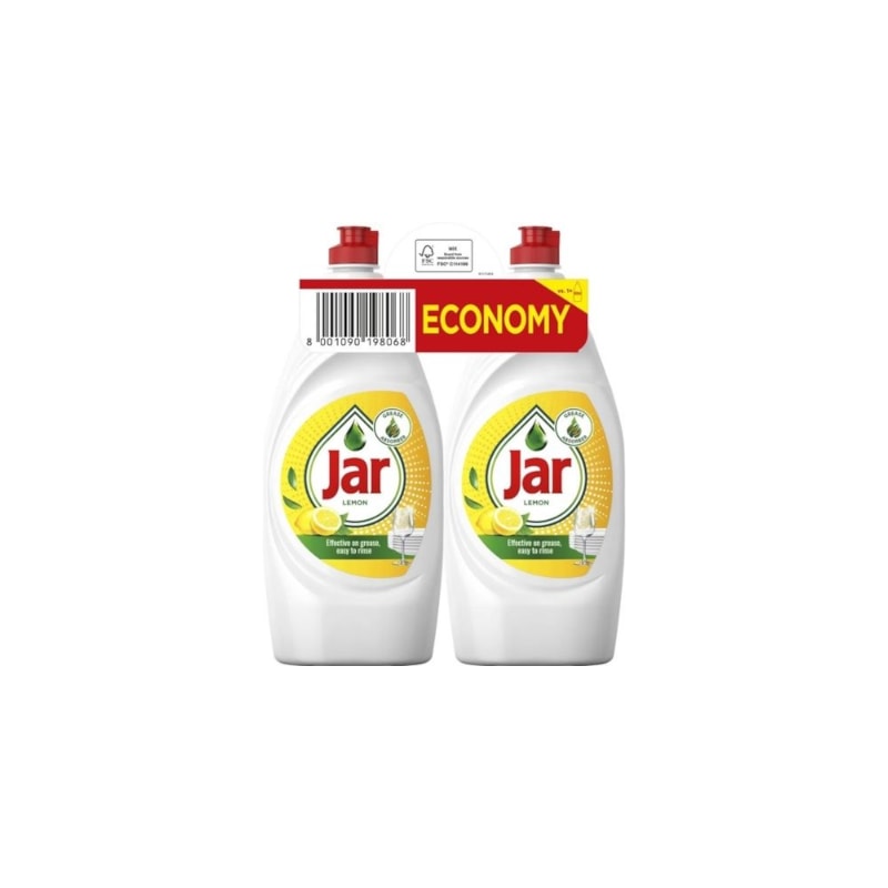 Jar Lemon v praktickém duopacku 2x900 ml. Osvědčený prostředek na mytí nádobí s citronovou vůní. Účinně rozpouští mastnotu i v chladné vodě. Výhodné balení dvou kusů pro gastro provozy.