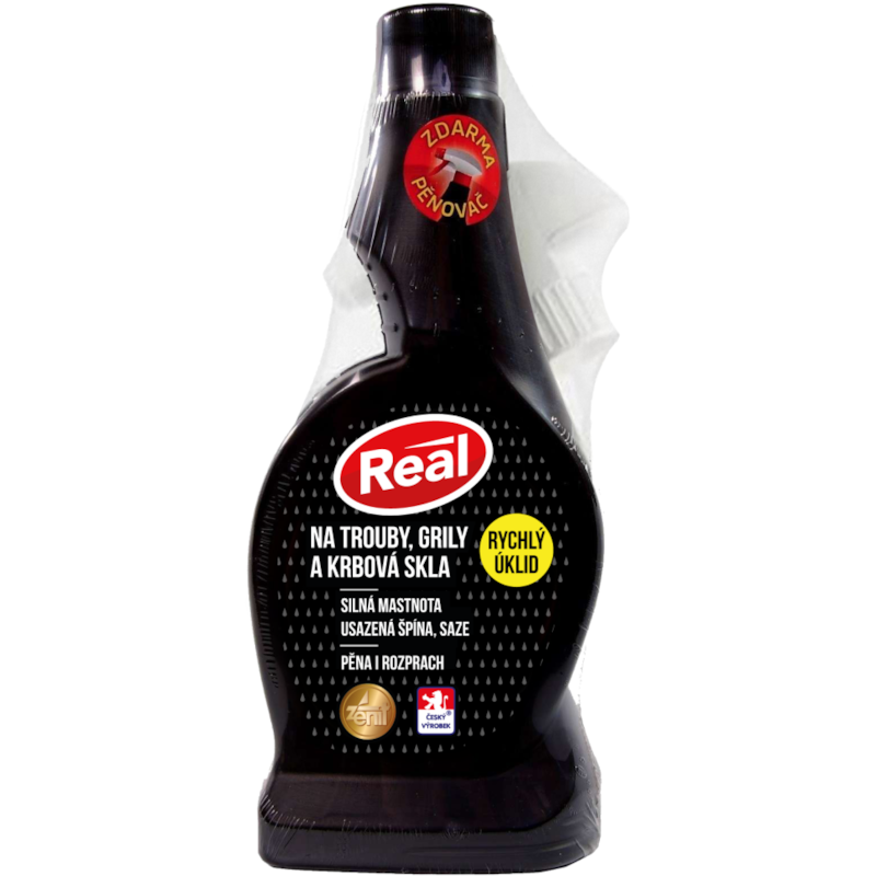 Real čistič na trouby a grily je silný prostředek speciálně vyvinutý pro odstraňování připálenin, mastnoty a zaschlých nečistot z trub, grilů a pečicích plechů. Nezbytný pomocník v každé profesionální kuchyni.